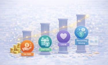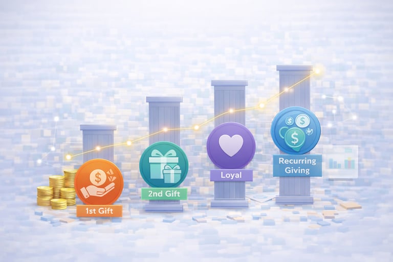 This perspective shows how donor relationships develop over time, highlighting where progress accelerates, slows, or stalls. It often reveals that long-term value is shaped early in the relationship, well before it appears in revenue figures.