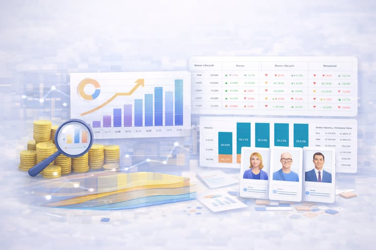 It highlights how revenue is structurally generated and how dependent results are on specific donor groups or behaviors. For many organizations, this is where the first insight appears: strong revenue does not always mean a strong donor base.
